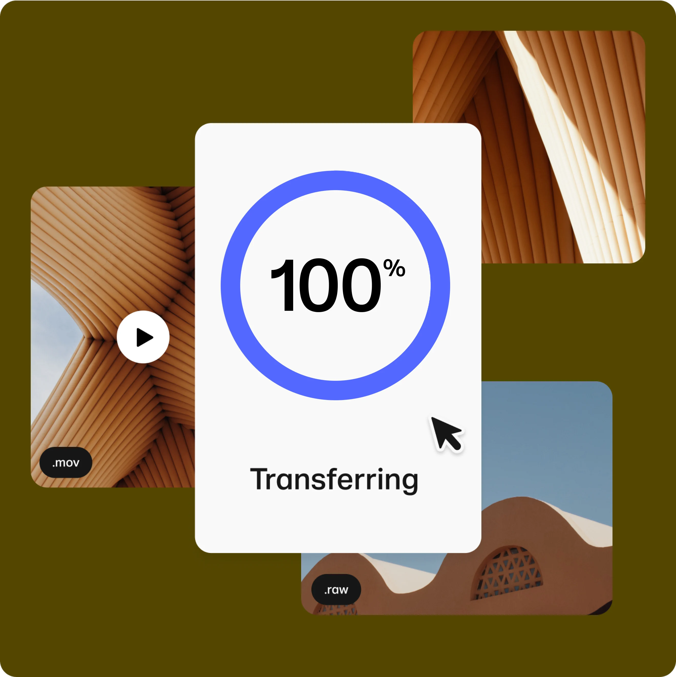 Upload a two hour high-res video, share 8000 RAW files, or 200 hours of TikTok videos in seconds. More time creating, less time waiting.